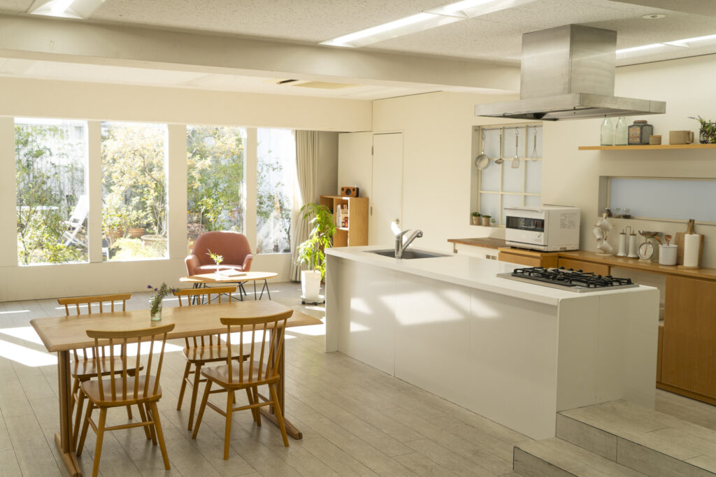 広いアイランドキッチン× ガーデンテラス × 自然光
